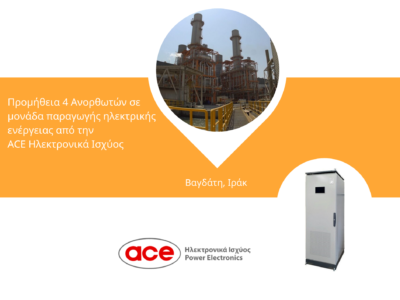 Η ACE Ηλεκτρονικά Ισχύος συνεργάζεται μ’ έναν από τους κορυφαίους κατασκευαστικούς ομίλους στην Ελλάδα, που διαθέτει στο ενεργητικό του εμβληματικά… Continue Reading Προμήθεια Ανορθωτών σε εργοστάσιο παραγωγής ηλεκτρικής ενέργειας