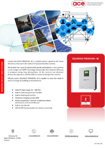 Inverter SOLARACE PREMIUM+ 3K is a reliable solution signed by ACE Power Electronics that covers the needs of off-grid photovoltaic systems.